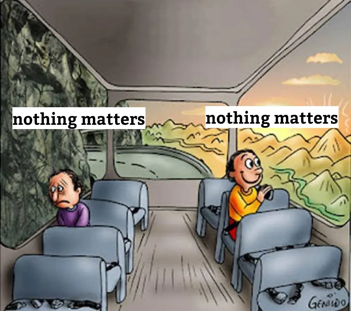 My takeaway isn’t to dive blindly into your work, but rather we get to choose what gives us meaning. Maybe for you, that is your job. Maybe it’s something else. Maybe you live for tailgating during football season, or a cup of steaming coffee in the morning, or your child’s dance recital, or traveling the world. There are an unlimited number of things to care about; the only thing that matters is whether or not it’s important to you.